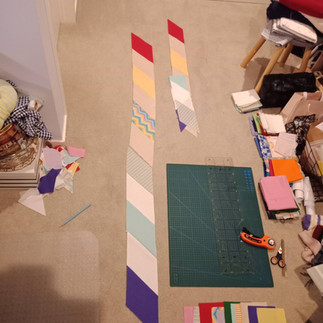 I tried using the strip piecing method, and the process and measurements were mostly trial and error. I ended up having two different widths for the "columns" ):