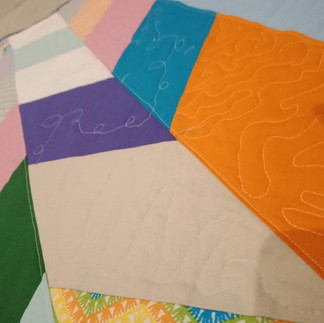 Nevertheless, I got to try out some free-motion stitching lines and designs, and even stitched the boy's name! :D