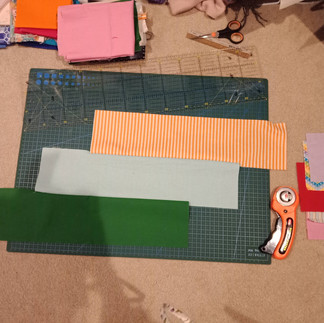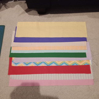Maybe too much, that I did not consider negative space which I later discovered ): Also, I probably should not have included the stripey fabrics in the pile!