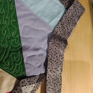The quilt sandwich by then weighed quite a bit, and it was tricky manoeuvring the material as I haven't got an extension table to allow the quilt sandwich to be level with the needle plate. I also did not know about the friction that would pose as an issue too!