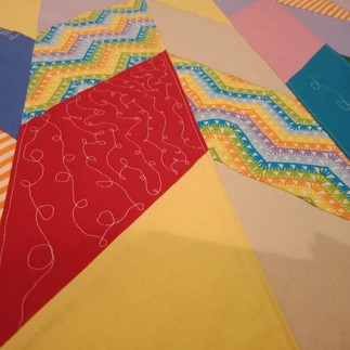 Colourful... Herringbone-wannabe quilt with free-motion stitching!