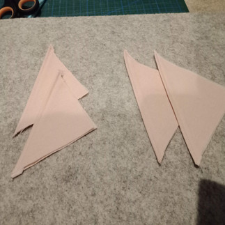 sewing to make the corner insert pieces: fabric right sides together, and interfacing on the top