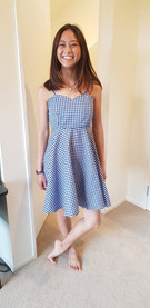 The first try was a blue gingham dress made with a lined bodice and (I think was) a 3/4 circle skirt! :) Loved it, and I think it is one of the first handmade dresses that I have worn out numerous times!