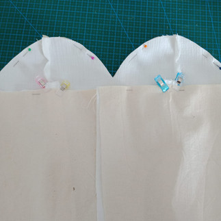 - To hem the curved hem, staystitch the curved edge of the circle skirt and fold it, press, and them sew.