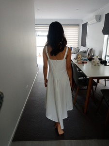 With this initial success, I decided to sew a white dress with a train for my engagement shoot! However, I ended up not wearing this dress because the neckline didn't turn out quite as nice as the first one did! ): Possibly because of the thicker fabric used and the width of the straps I had sewn! I think this was again, made with a 3/4 circle skirt!